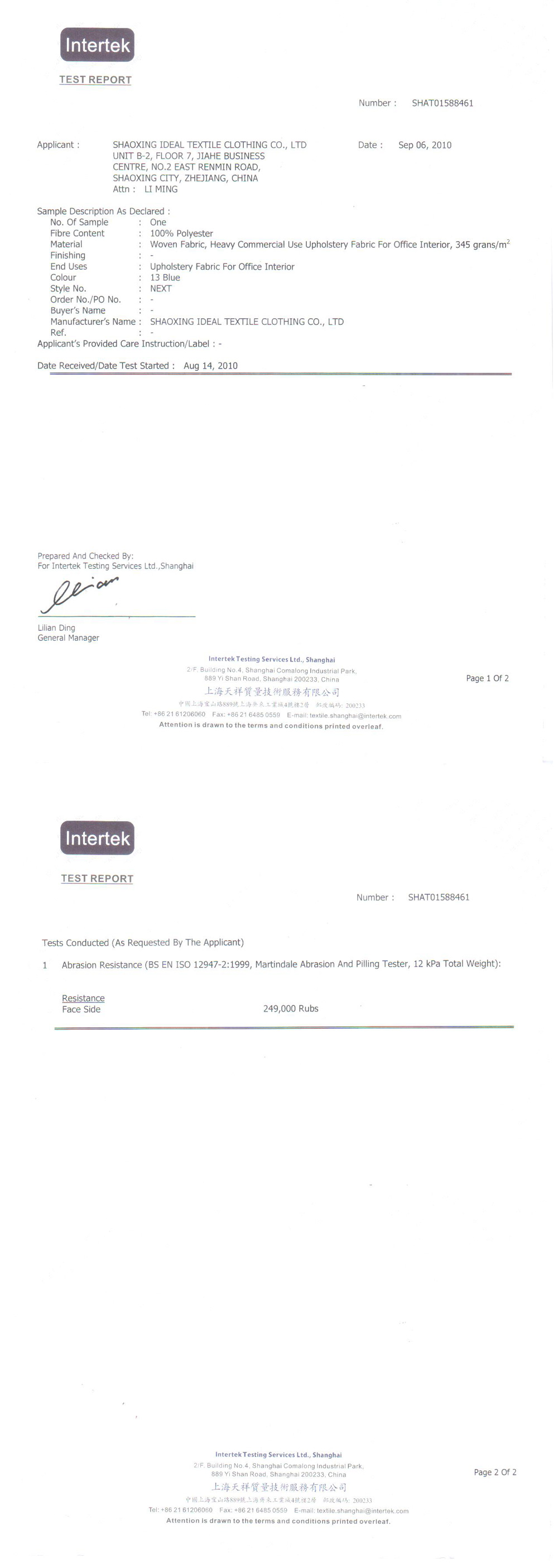 | Website: | Please visit our website to open a new world to fabrics for office interiors. www.idealtextile.com |