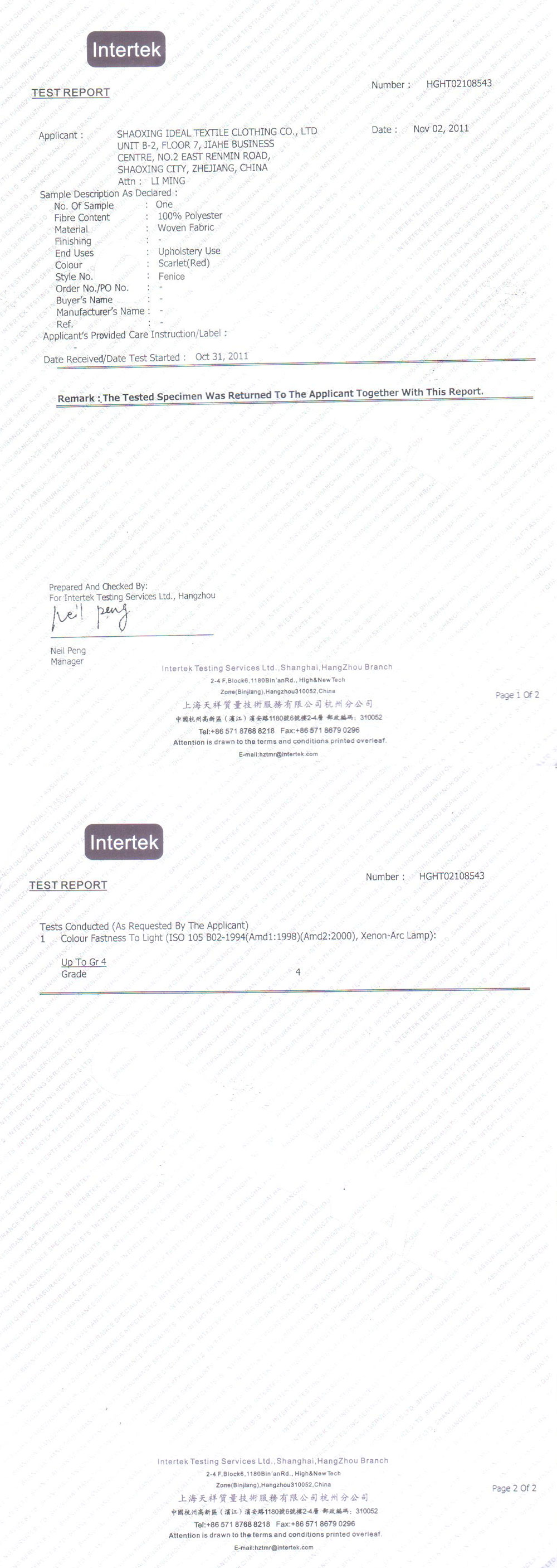 | Fastness to rubbing: | Wet:5 Dry:4.5 | ||||||||