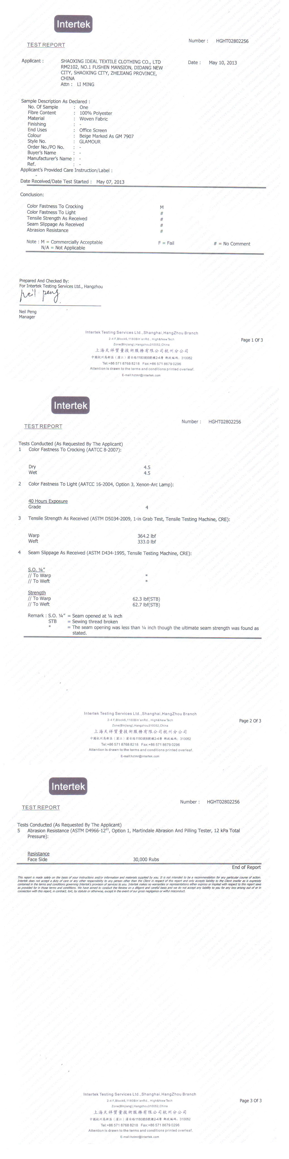 | Fastness to rubbing: | Wet:5 Dry:4.5 | |||||||||