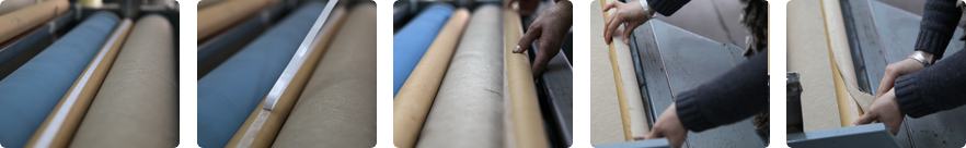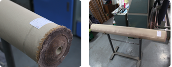 固定整卷面料的一端在贴有双面胶的纸管上来防止因开头未卷好而造成的折痕