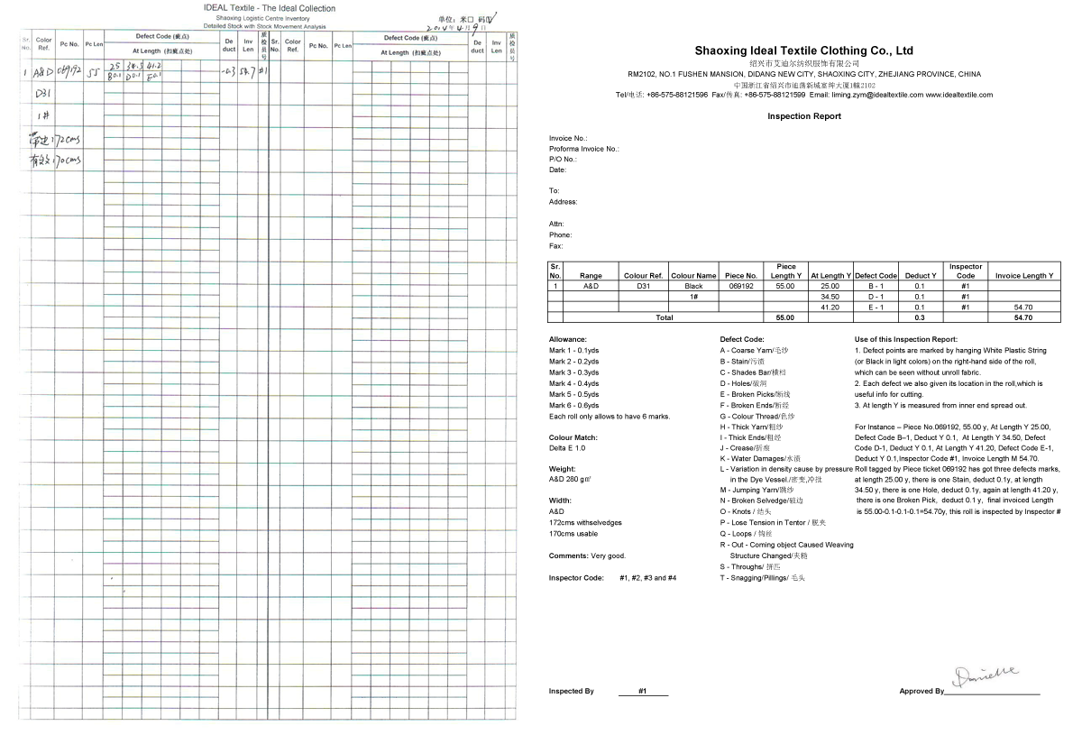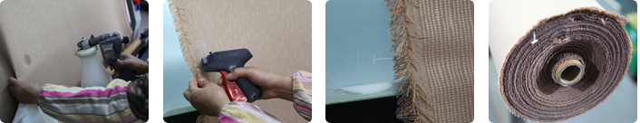 疵点用白色的塑料吊线吊在面料的左手边布边上,不用展开整卷面料就知道疵点的位置